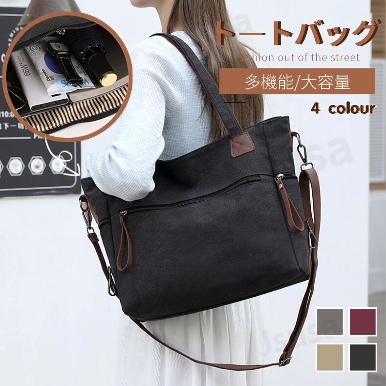 トートバッグ レディース バッグ 厚手 2 キャンバス 4 ファスナー付き バッグ シンプル おしゃれ 大容量 通勤バッグ 持ち運び 通学 手提げ 肩掛け 仕事用 斜め掛け ショルダーバッグ