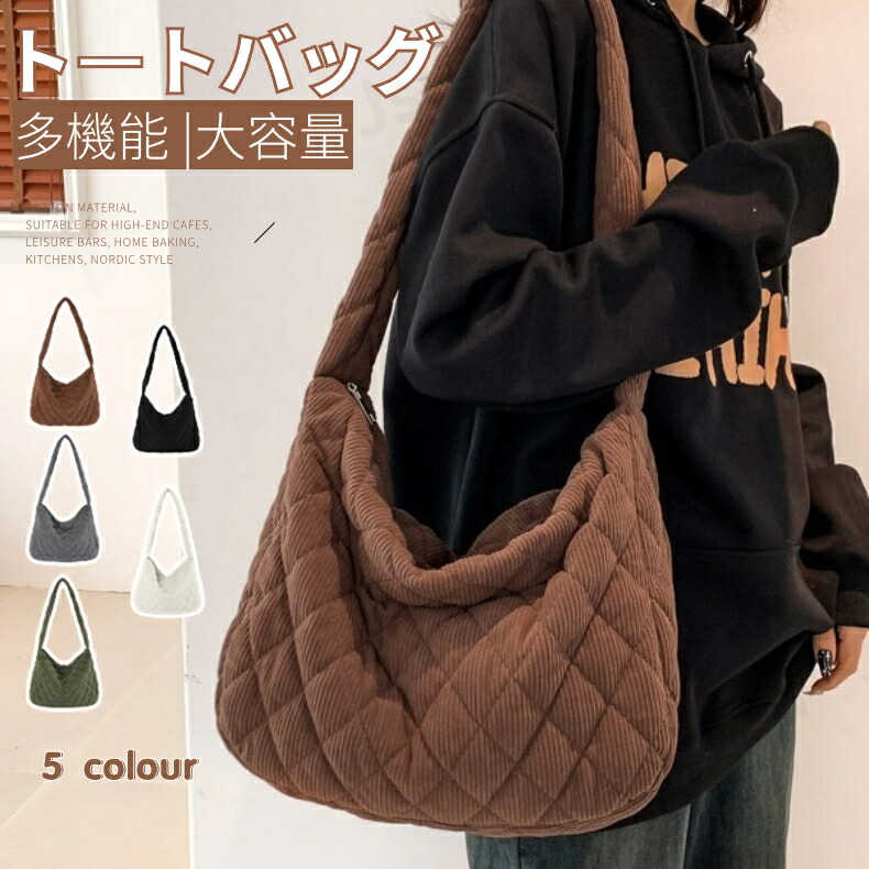トートバッグ レディース コーデュロイ バッグ 大きめ a4 シンプル おしゃれ お買い物バック 収納バッグ 持ち運び 便利 無地 高耐久 通勤 韓国風 肩掛け 手提げ マザーズバッグ エコバッグ シ