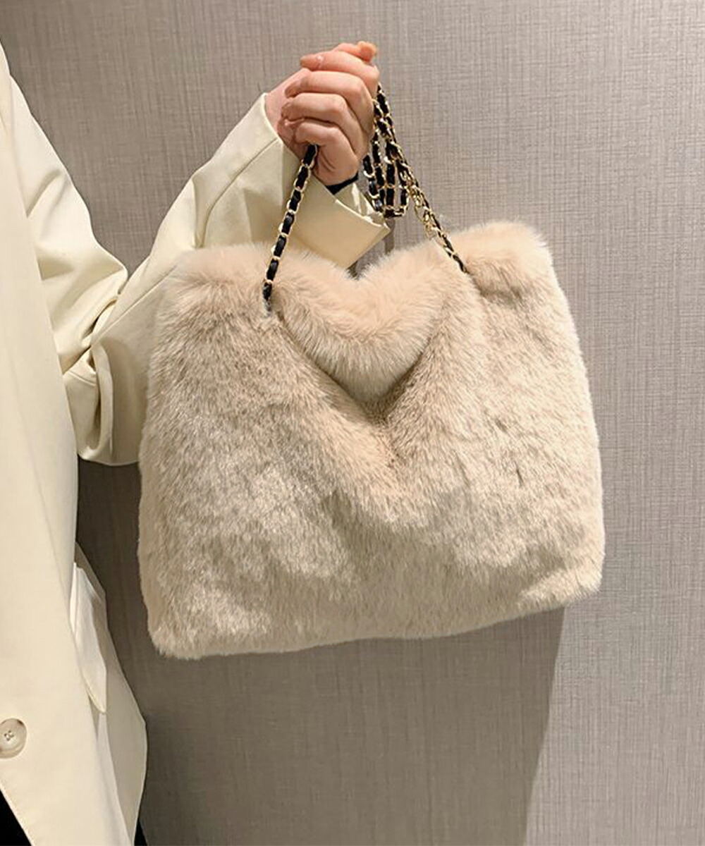 ふわふわトートバッグ レディース 軽量バッグ おしゃれ ワンショルダーバッグ エコファー 秋冬バッグ 肩掛けカバン 大人
