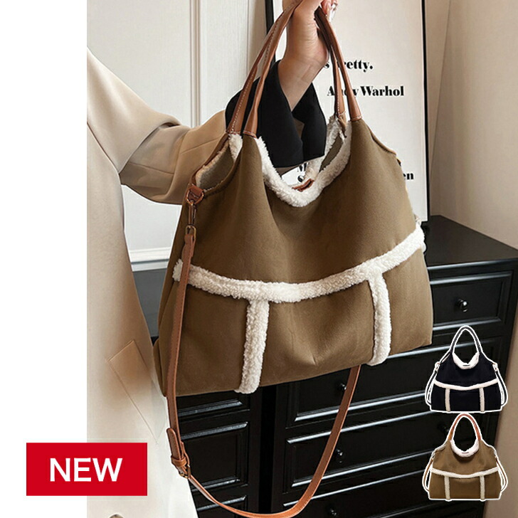 レディース ポーチ付き 裏ボアバッグ 大容量 もこもこ手提げバッグ 通勤通学 斜め掛け鞄 秋冬 ムートン風バッグおしゃれ