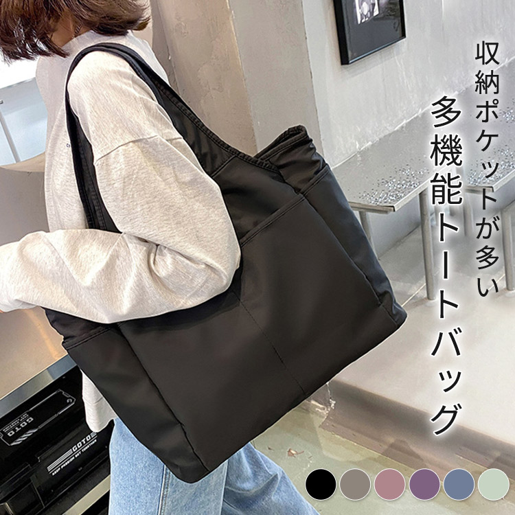 レディース ポケット 4 ナイロン 軽い 手さげカバン 多機能 通勤 メンズ 無地 バッグ ナイロンバッグ 大きめ シンプル 肩掛け 男女兼用 トート バッグ 肩がけ ビジネスバッグ トートバッグ