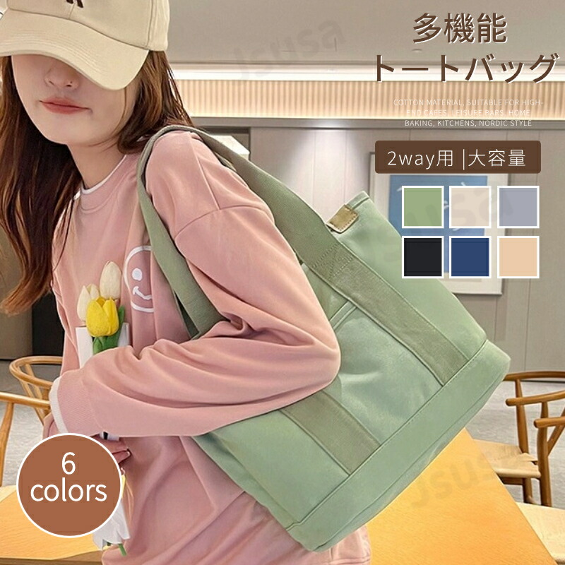 トートバッグ レディース キャンバス 多機能 a4 ポケット バッグ シンプル おしゃれ お買い物バック 収納バッグ 持ち運び 肩掛け 旅行 仕事用 通勤通学 大容量 マザーズバッグ 多収納 横 大き