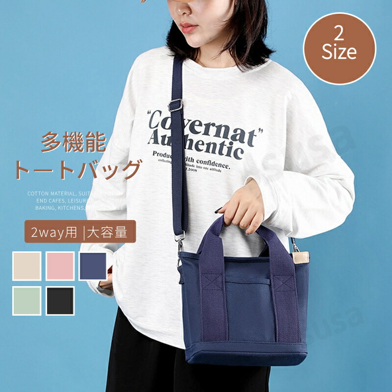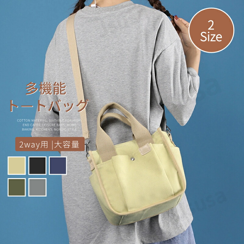 2way 大容量 肩掛け ファスナー付き 無地 おしゃれ 多収納 S Mサイズ 前ポケット マグネット付き