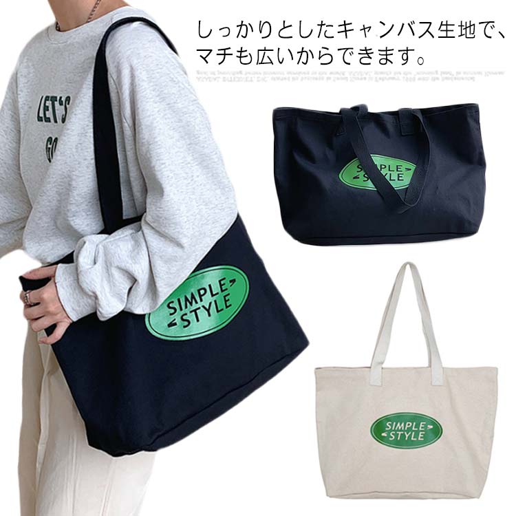 トートバッグ キャンバス バッグ レディース 肩掛け 手提げ 英字 バッグ 鞄 通勤 通学 シンプル 横型 軽量
