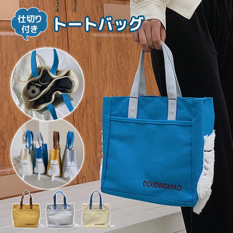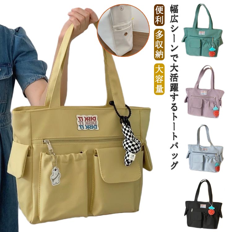 4 4 トートバッグ 40*29*11 エコバッグ 多収納 ポケット付き 便利 大容量 通学 通勤