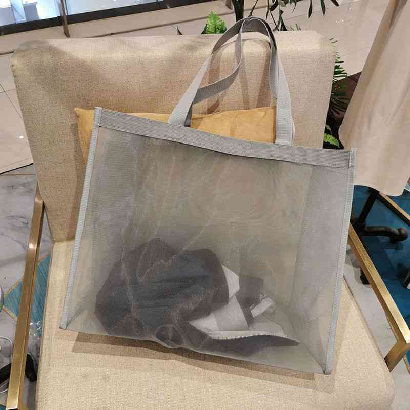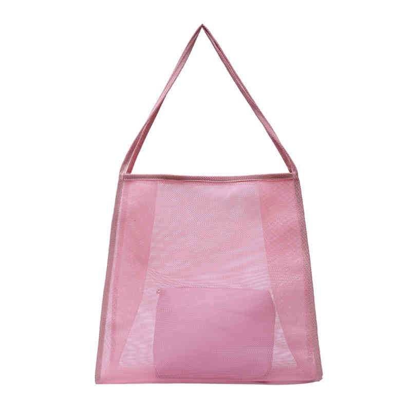 メッシュ トートバッグ レディース クリア トートバッグ ポケット付き 肩掛け エコバッグ ビーチバッグ ハンドバッグ 軽量 おしゃれ