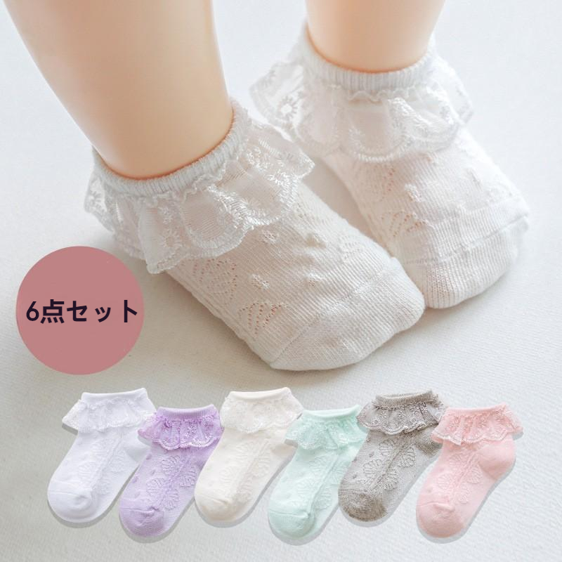 靴下 ベビー 6足セット 女の子 チュール 伸縮性 柔らかい 子供用靴下 赤ちゃん 新生児 ソックス ベビー用品 出産祝い ギフト 可愛い キッズ ベビーソックス ルームソックス 通気 保育園 入園準