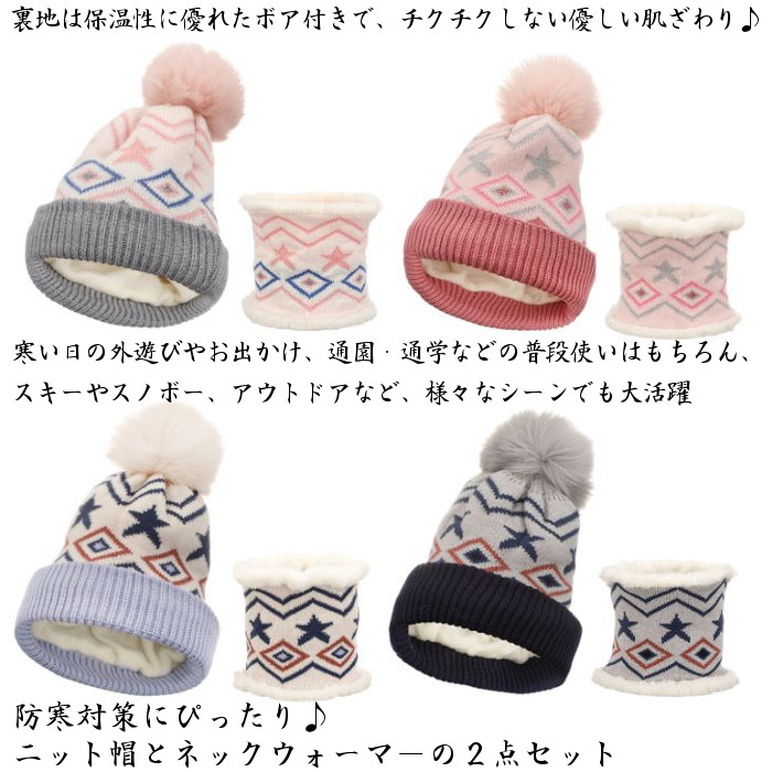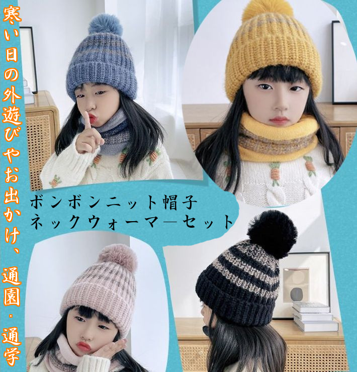 子ども ニット帽 キッズ 女の子 子供帽子 ネックウォーマー セット ニットキャップ ワッチキャップ マフラー スノボー スキー 子供 防寒 ジュニア 帽子 冬 こども ニット帽子 かわいい 子ども
