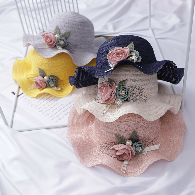 可愛い オシャレ 花弁麦わら帽子 通気 折りたたみ ハット 7色大人子供対応 お姫様 プリンセス カット 日焼け防止 ビーチハット バケーション 海浜 春 夏 秋ハット--11142-