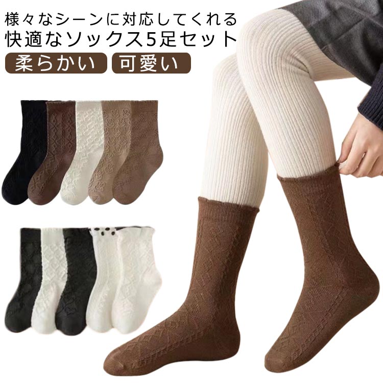 ~ 女の子靴下 5足セット シンプル ハイソックス 快適キッズ ベビー マタニティ キッズファッション 靴下 レッグウェア 靴下