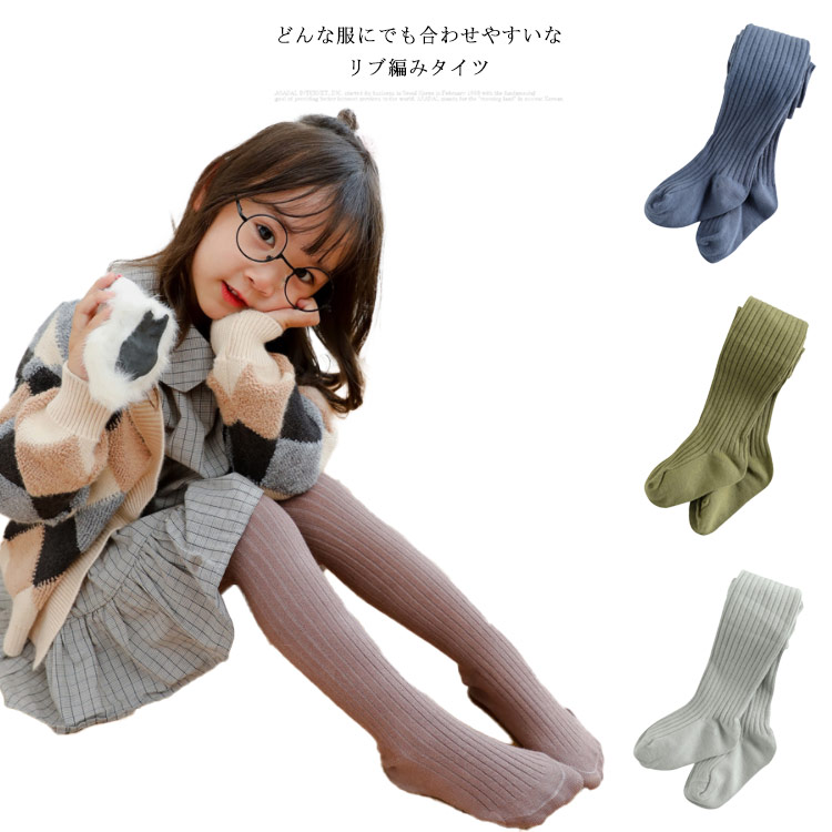タイツ リブタイツ 子供 キッズ ベビー 赤ちゃん 65 75 85 95 105 115 125 135cm リブ編み 子ども 無地 女の子 幼児 綿 かわいい おしゃれ くすみカラー 暖かい スト