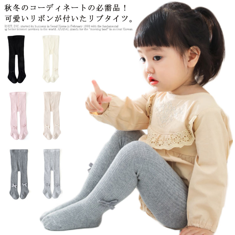 タイツ 子供 リボンタイツ カラータイツ リブ レギンス 無地 おしゃれ 女の子キッズ ベビー マタニティ キッズファッション 靴下 レッグウェア タイツ
