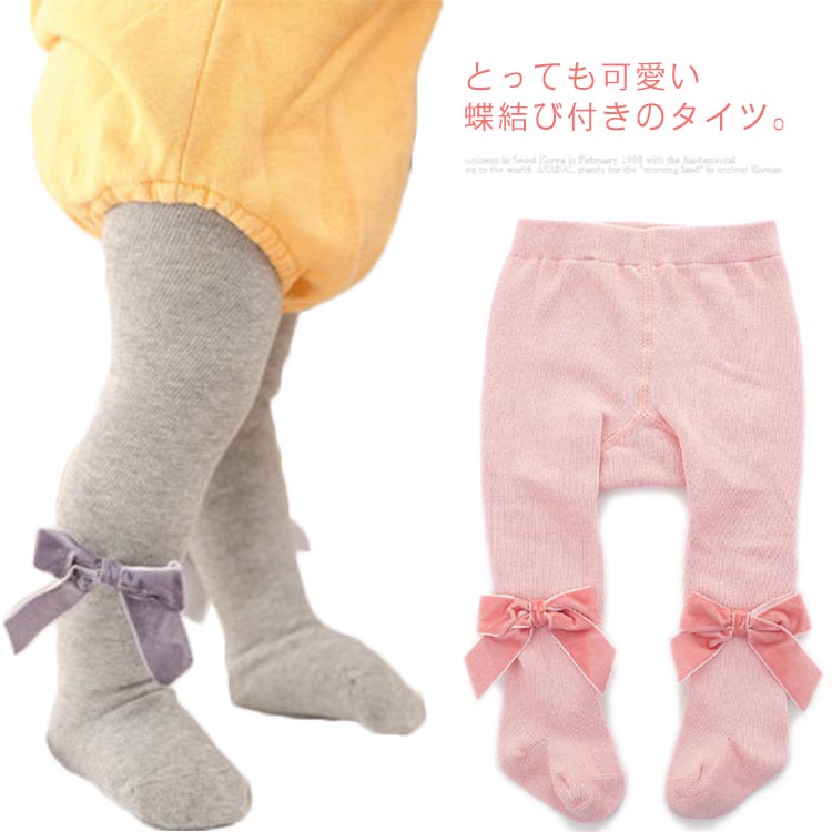 可愛いリボン付きキッズ用タイツ レギンス 子供タイツ 女の子 無地 可愛いキッズ ベビー マタニティ キッズファッション 靴下 レッグウェア タイツ
