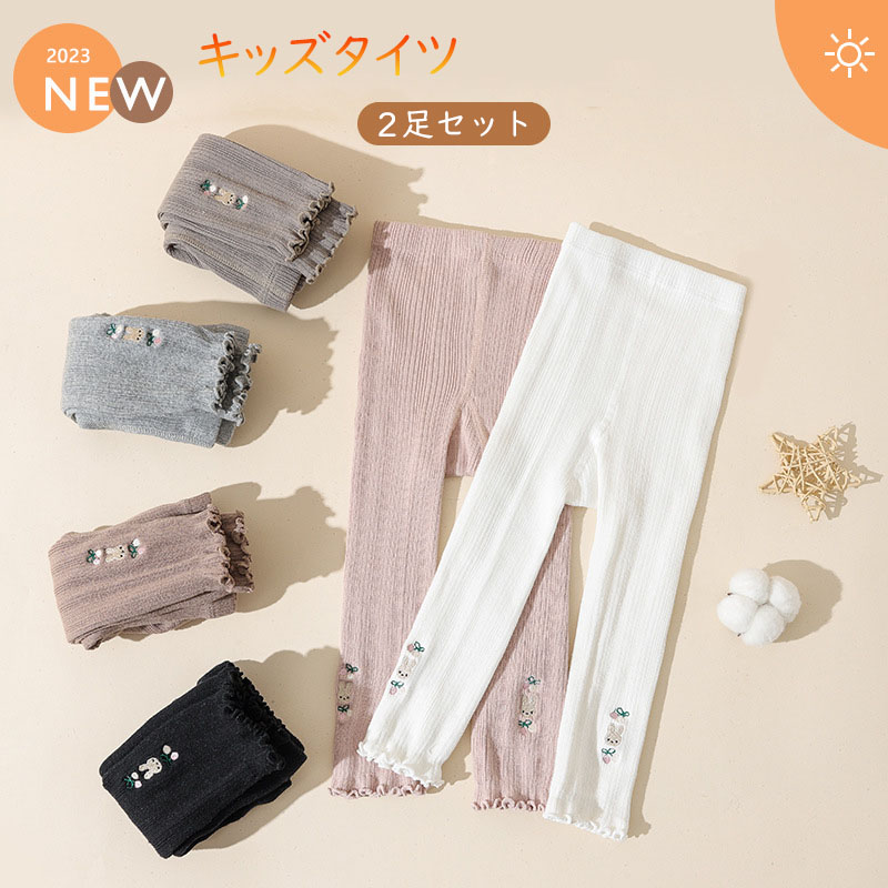 子供タイツ 2足セット 編みタイツ 刺繍 ストッキング レギンス コットン 15℃~20℃ 靴下 入学式 結婚式 お呼ばれ ピアノ 発表会 バレエ 子供ドレス用 女の子 春 夏 秋 かわいい キッズ