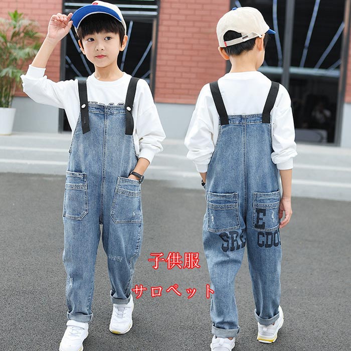 キッズ サロペット デニムパンツ デニムオールインワン ロングパンツ オーバーオール 120 130 140 150 160 170