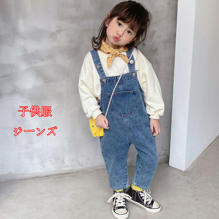 キッズ サロペット デニムパンツ デニムオールインワン ロングパンツ オーバーオール110 120 130 140 150cm