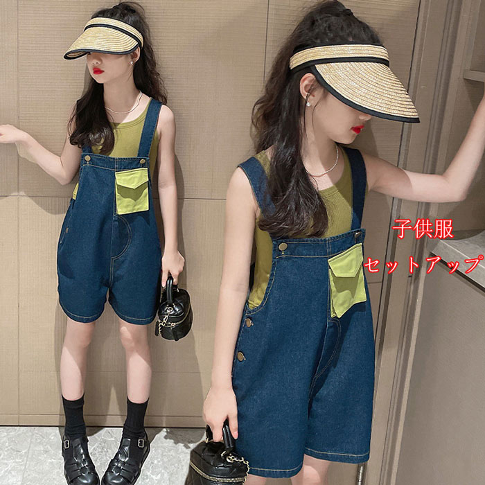 子供服 セットアップ ノースリーブ tシャツ キッズ オーバーオールショートパンツ サロペット110 120 130 140 150 160 170cm