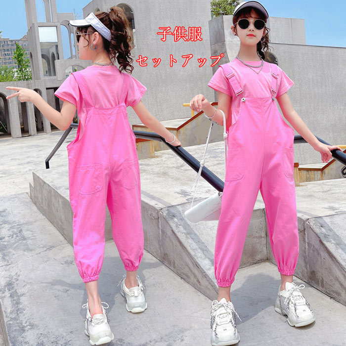 供服 女の子 セットアップ 2点セット 上下セット 女の子 サロペット ロングパンツ オーバーオール 110 120 130 140 150 160