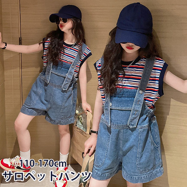 サロペットパンツ キッズ デニムサロペット ショートパンツ サロペット 夏 キッズ デニムパンツ110 120 130 140 150 160 170