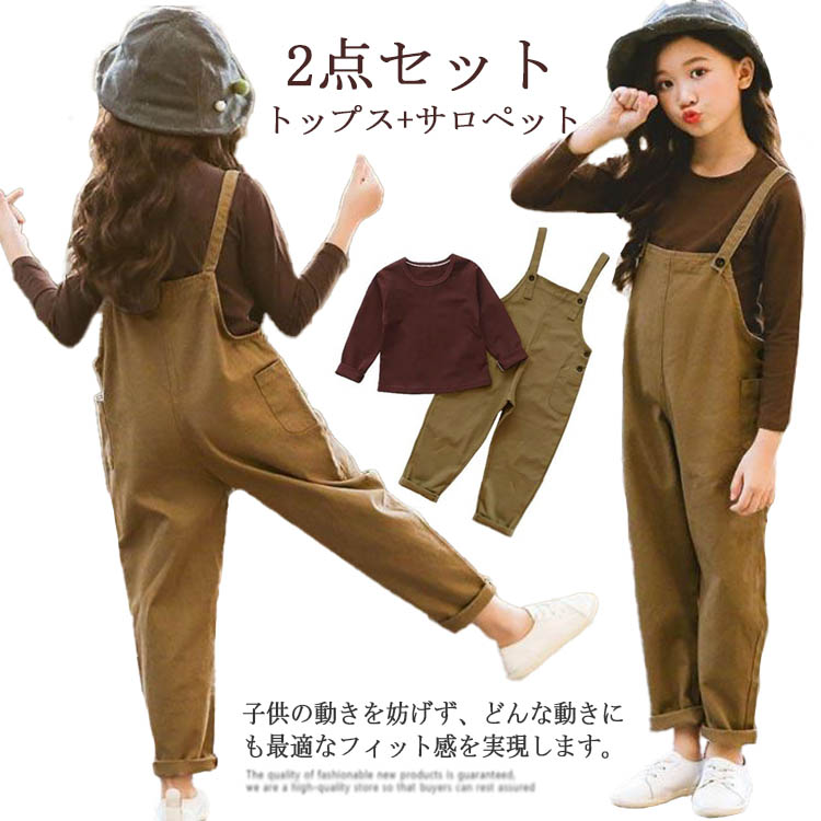 子供服 セットアップ 女の子 キッズ 長袖 春秋 秋着 上下セット 2点セット 韓国子供服 トップス 長袖 無地 ジュニア スカート サロペット 可愛い