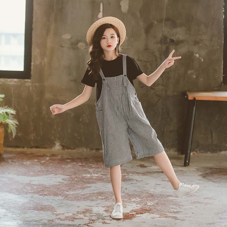 子ども服 子供服 女の子 夏 夏服 カジュアル ナチュラル 半袖 Tシャツ オーバーオール 七分丈 さろペット チェック柄 千鳥柄 ワイドパンツ 可愛い ゆったり レディース