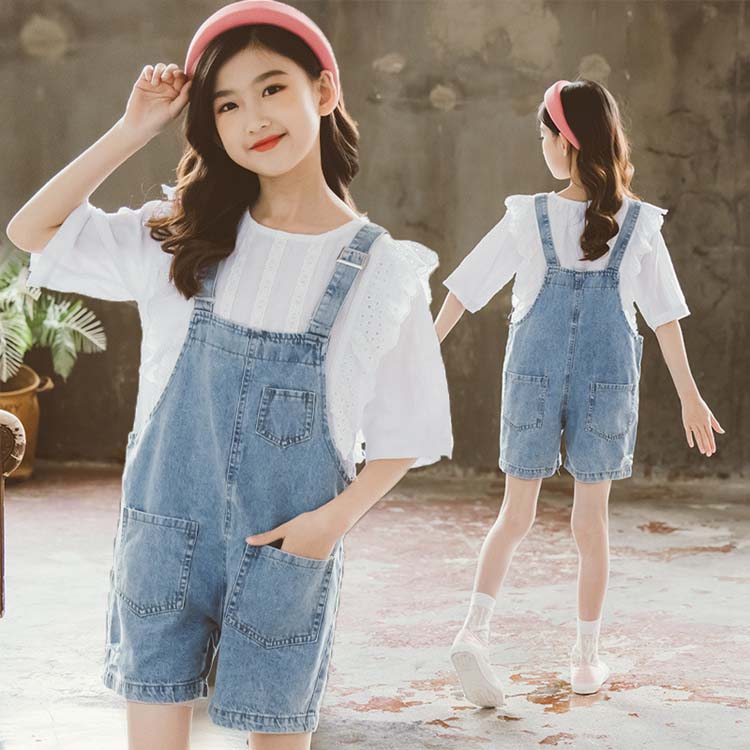 子ども服 子供服 女の子 夏服 夏 カジュアル ナチュラル 半袖 ブラウス サスペンダー キッズ デニム パンツ サロペット おしゃれ 可愛い オーバーオール ショートパンツ