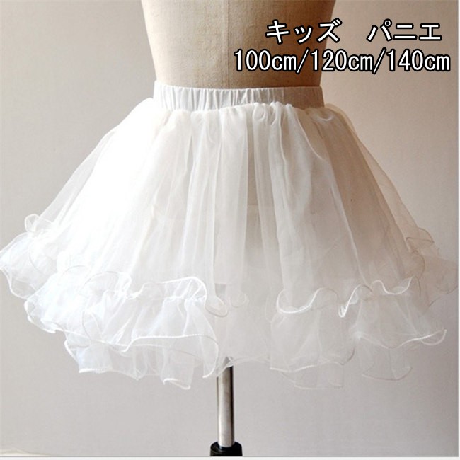 ホワイト 長さ35 キッズ パニエ 子供 ボリュームアップパニエワイヤーなし白レース裾大量注文可能ドレスと合わせ,白,発表会,結婚式,キッズ,ブライダル パニエ 子供 チュールパニエ ボリューム