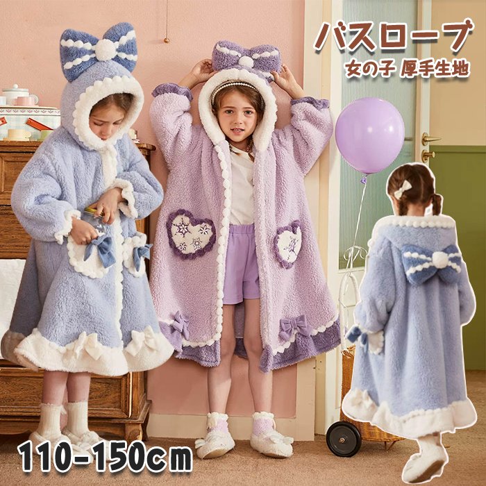 パジャマ キッズ 冬用 ガウン ロング ルームウェア レディース ナイトガウン バスローブ 子供服 女の子 着る毛布 寝巻き 親子服