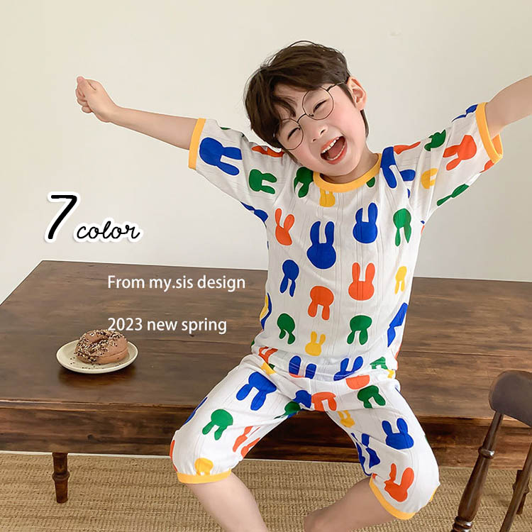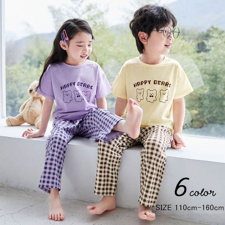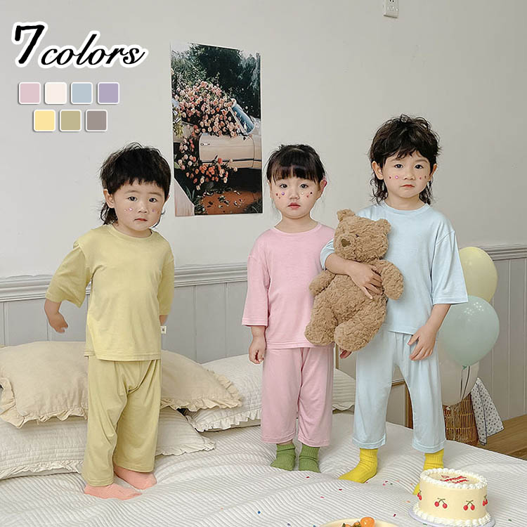 セットアップ パジャマ ルームウェア キッズ 春 夏 女の子 男の子 綿 全7色 半袖 寝間着 80 90 100 110 120 130 140cm セットアップ 上下セット 2点セット 冷房対策