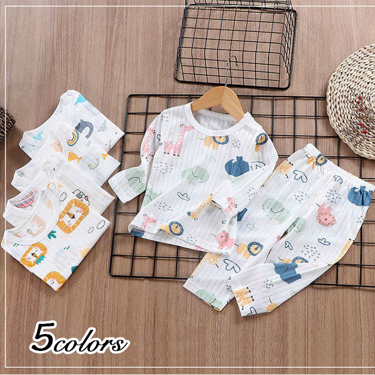 セットアップ パジャマ ルームウェア ベビー服 キッズ 春 夏 女の子 男の子 綿 全5色 長袖 赤ちゃん 寝間着 90 100 110 120 130 140 150cm セットアップ 上下セット