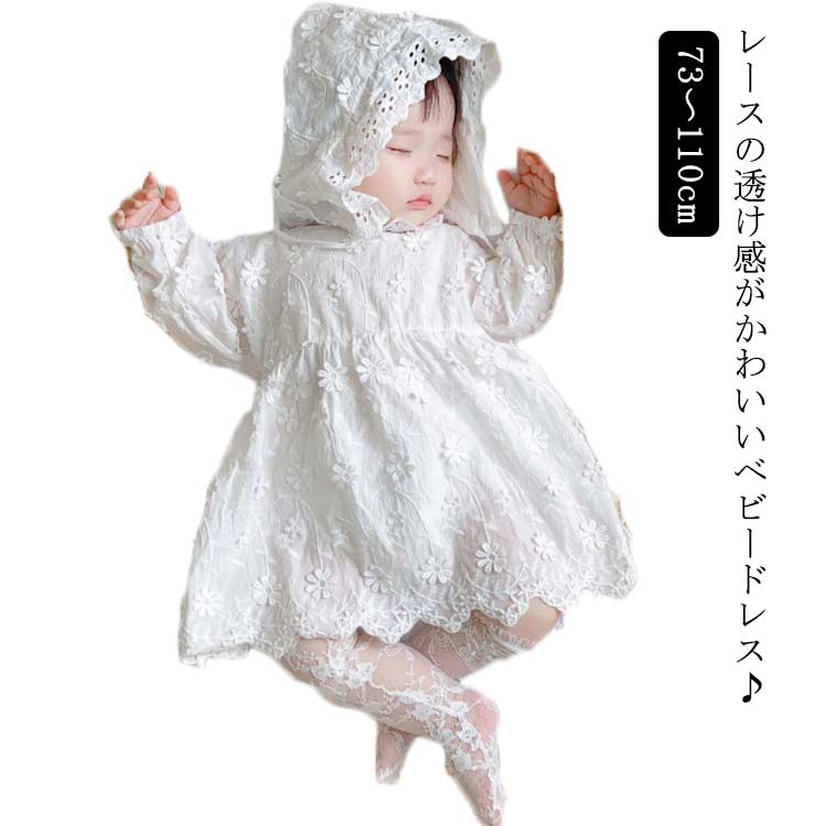 透け感 フォーマル 写真撮影 ベビードレス ドレス 子供 退院 晴れ着 お帽子付き 結婚式 73 ベビードレス 90 100 110 80