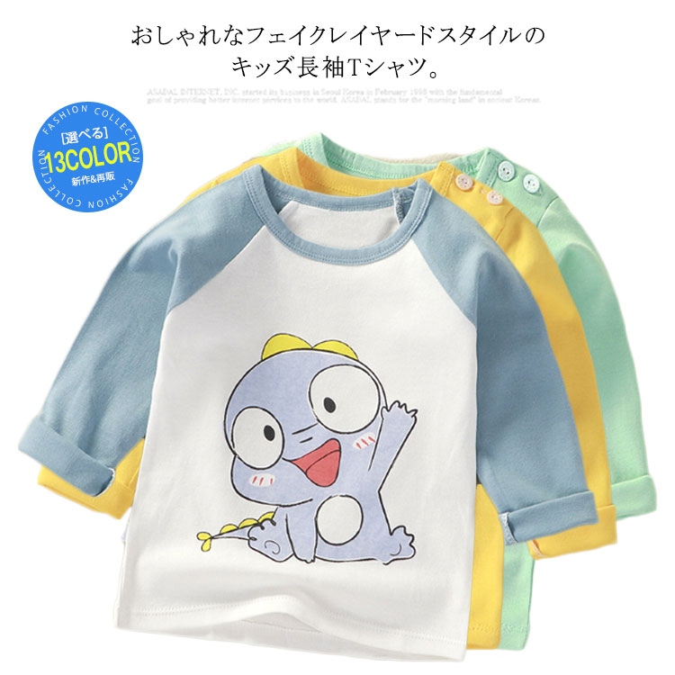 ベビー服 長袖シャツ 子供服 トップス フェイクレイヤード 男の子 女の子 赤ちゃん キッズ 73 80 90 95 100 120 130 ファッション カットソー ラウンドネック シンプル