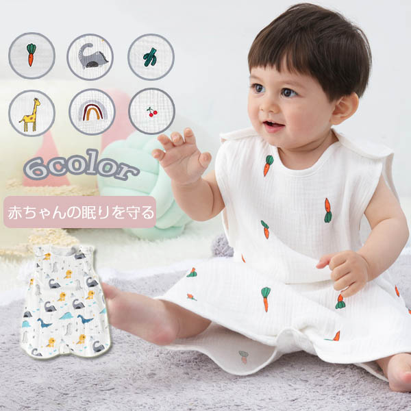 スリーパー ベビー 赤ちゃん 寝袋 6重ガーゼ 女の子 男の子 お昼寝 寝冷え防止 通気性 新生児 出産お祝い ギフト 夏 オーガニックコットン100% 柔らかく--11306-