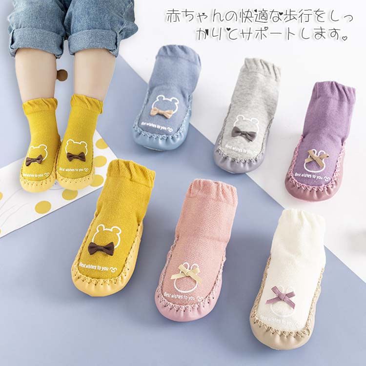 靴 ベビー ルームシューズ 幼児 ソックス ソックスシューズ 赤ちゃん 快適 リボン 靴下 落下防止 滑り止め付き 春秋冬 可愛い 出産祝い プレゼント