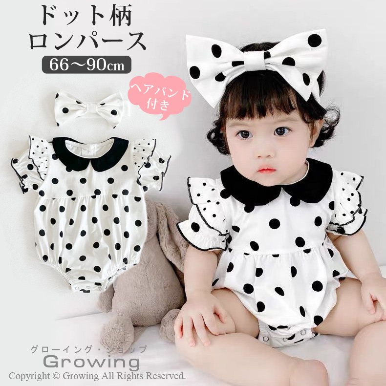 ロンパース ベビー ドット フリル ヘアバンド 赤ちゃん ベビー服 キッズ 子供服 ロンパース 赤ちゃん ベビー 女の子 キッズ お宮参り