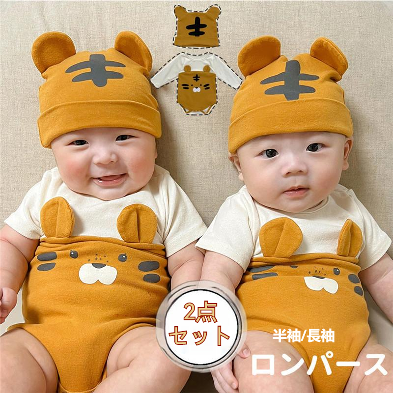 新生児服 2点セット ベビー服 パジャマ カバーオール ロンパース 北欧風 おしゃれ 赤ちゃん 可愛い コットン 子供服 春 夏 秋 新生児服 出産祝い プレゼント 帽子 長袖 半袖 ルームウエア ボ