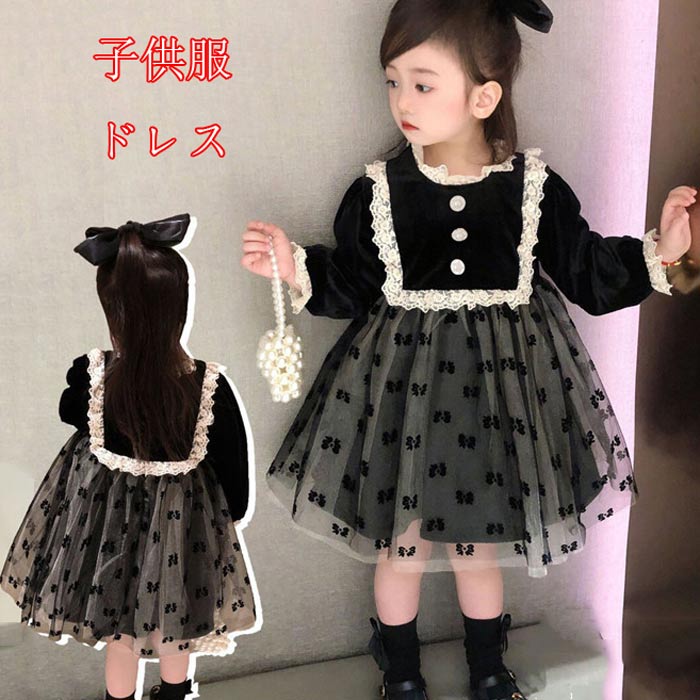 供ドレス ワンピレース春秋 長袖 ワンピース フリルワンピース 女の子 かわいい ワンピ ライン 女の子ワンピース キッズワンピース春 秋 90 100 110 120 130 140