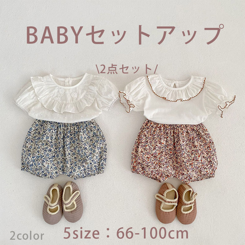 上下セット 花柄 セットアップ キッズ 子供服 可愛らしさ 半袖シャツ×パンツセットアップ 2点セット 赤ちゃん ベビー 女の子 ガールズ ベビー服 キッズ お宮参り
