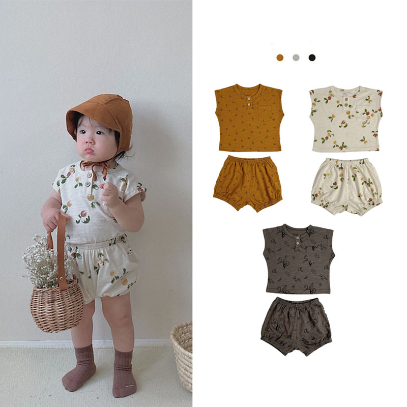 ベビー服 上下セット 夏服 ベビー 赤ちゃん 子供 夏用 ノースリーブ 涼しい 綿 コットン 薄手 女の子 男の子