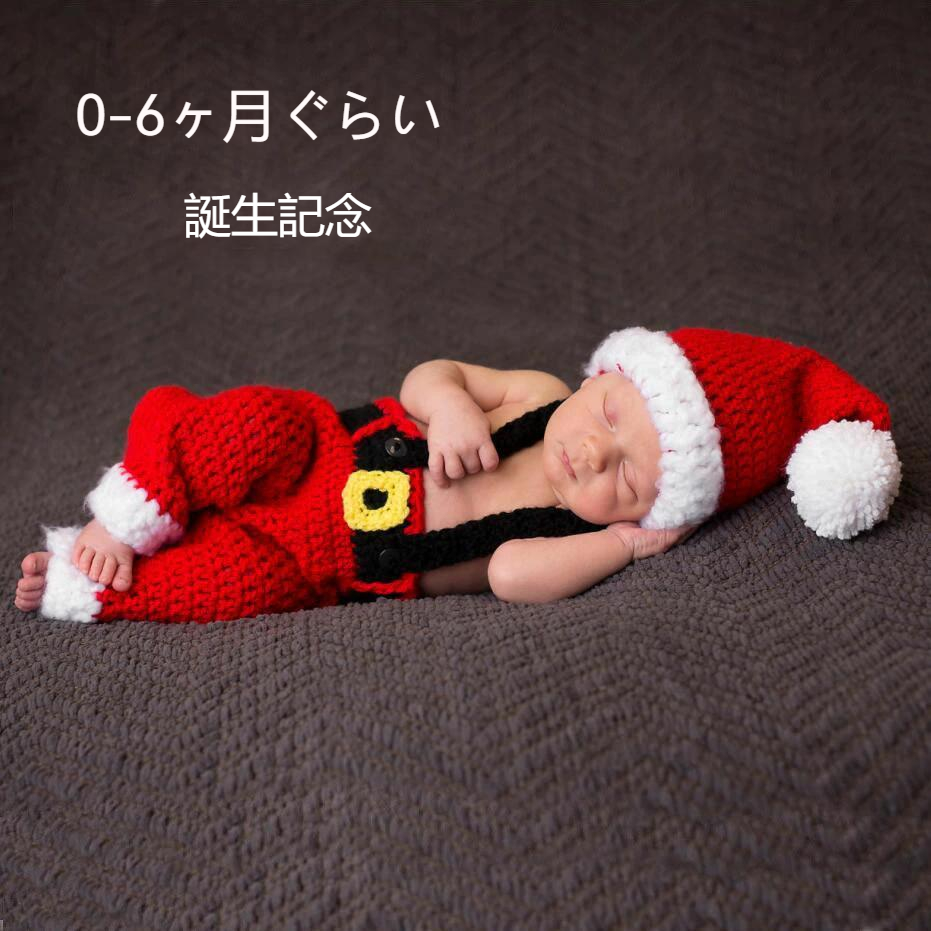 ベビー撮影服サンタクロース 2点セット 新生児フォト 写真撮影 記念写真 赤ちゃん ベビー ニットレッド帽子ニューボーンフォト 寝相アート 月齢フォト--11343-