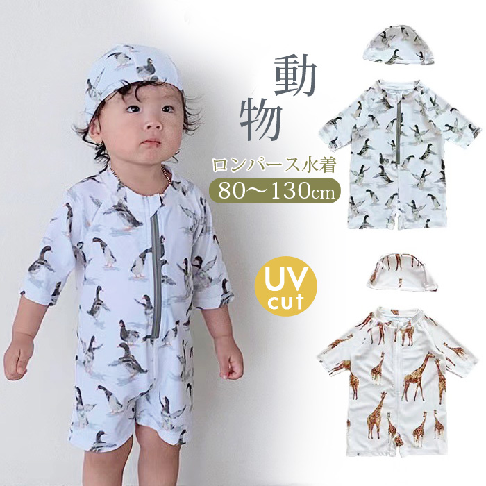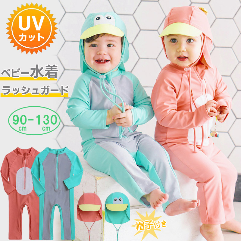 ベビー 水着 男の子 ロンパース ラッシュガード ベビー水着 女の子 男の子 オールインワン 子ども 子供 動きやすい スイムキャップ 水着 ジュニア 水遊び プール