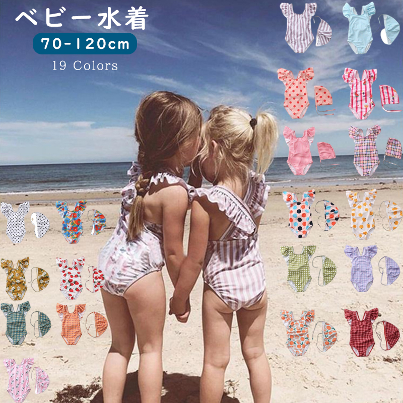 キッズ ベビー 水着 女の子 帽子 オールインワン 子ども 子供 水着 動きやすい スイムキャップ 水着 ジュニア 水遊び プール