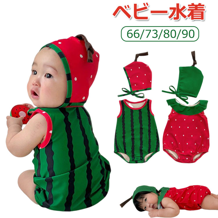 水着 ベビー ワンピース 女の子 オールインワン フルーツ いちご スイムキャップ 子供 スイムウェア 海 プール スイミング ビーチ キッズ 保育園 幼稚園 カット 紫外線対策 日焼け対策 小学