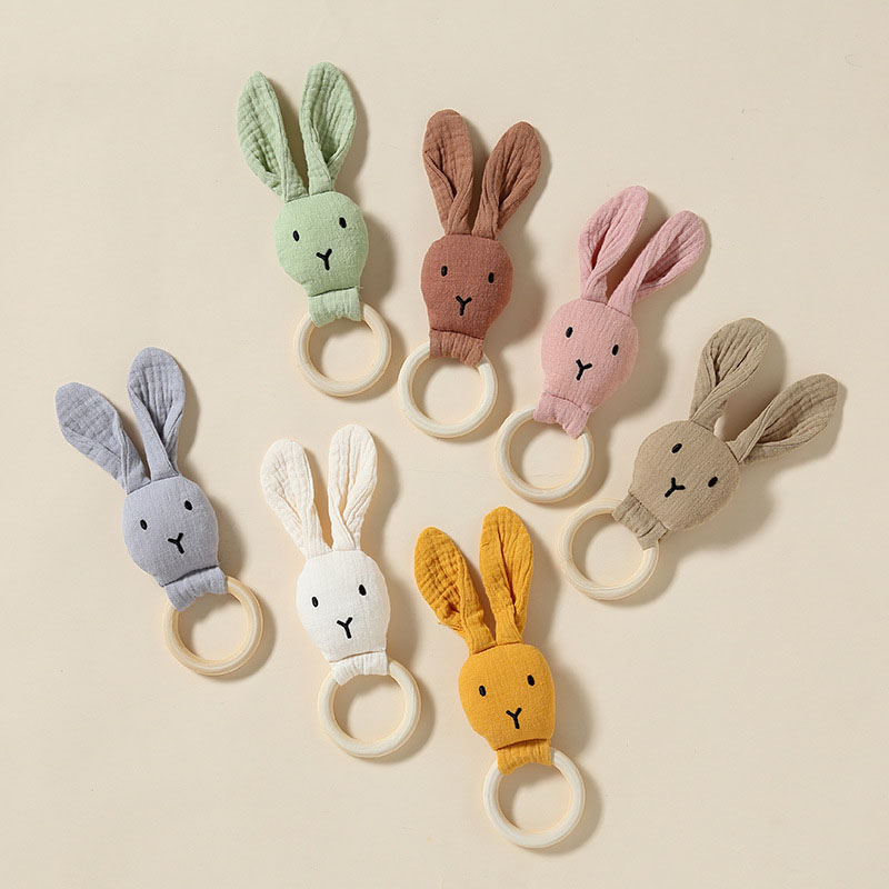 寝かしつけ用 おしゃぶりタオル 鈴付き ぬいぐるみ おもちゃ 木製リング ウサギ 噛むおもちゃ おねんね抱っこ毛布 兎 新生児 幼児用 プレゼント ギフト