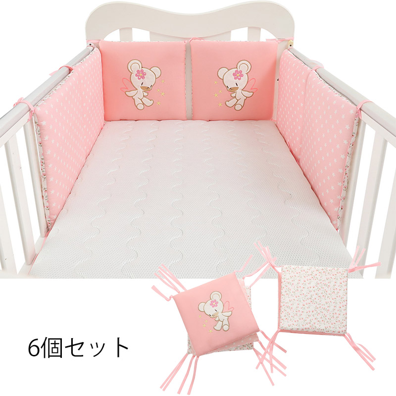 ベビーベッドガード クマ サイドガード 6個セット 四方タイプ トゥインクルスター ベビーベッド用 ごっつん防止 ベッドバンパー ベビーベッド 小物動物デザイン