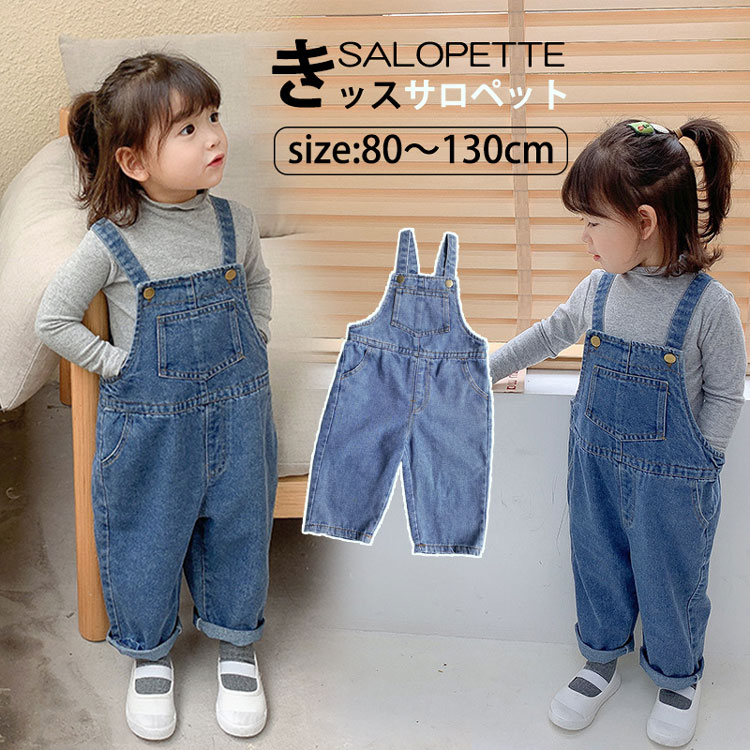 デニム サロペット ゆったり ワイド オーバーオール 子供服 女の子 男の子 男女兼用 オーバーオール サロペット キッズ ロングパンツ ゆったり