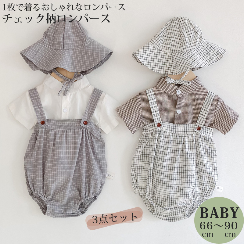 子ども服 女の子 チェック柄 ロンパース サロペット カジュアル ナチュラル キッズ 半袖 赤ちゃん ベビー 女の子 ベビー服 キッズ お宮参り