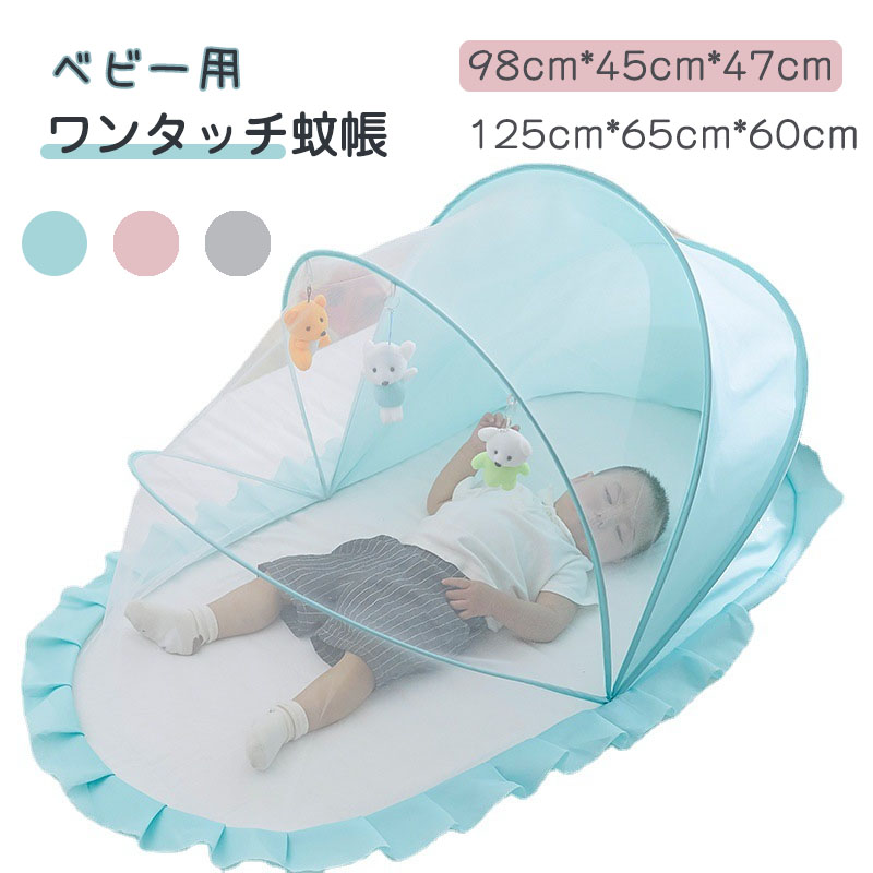 蚊帳 ベビー ベビーベッド用 ワンタッチ 遮光 折りたたみ 洗える 子供用 幼児 赤ちゃん 0歳 6ヶ月 1歳 2歳 3歳 4歳 底なし 防虫 カヤ 風よけ メッシュ 持ち運びに便利