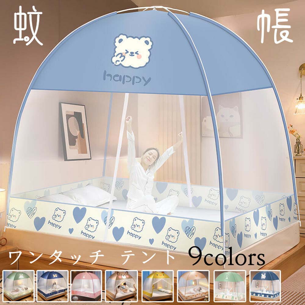 快適 害虫駆除 テントワンタッチ モスキートネット 蚊 蚊帳 安眠 底面付き 害虫 大判ワイドサイズ 床用 簡単設置 折りたたみ式 むかで ベッド用 ホコリ カヤ ドーム
