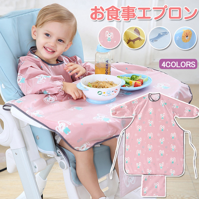 食べ物が落ちるのを効果的に防ぐ一体型お食事エプロン 長袖 保育園 撥水 携帯便利キッズ ベビー マタニティ 授乳用品 ベビー用食事用品 スタイ お食事エプロン お食事エプロン